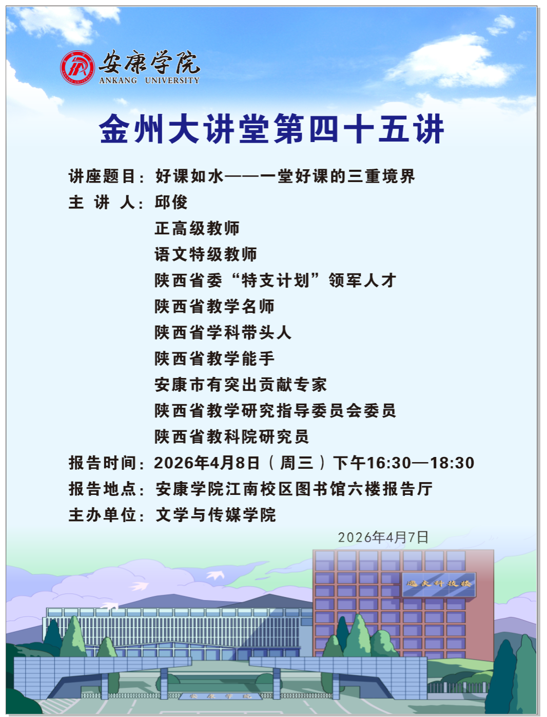 导航痕迹 首页 > 新闻通知 > 通知公告 > 正文 biwn必赢网址新闻 通知公告 金州大讲堂第四十五讲(主讲人:邱俊 陕西省教科院研究员) 发布人:bwin中国官网 发布日期:2026年04月07日 阅读次数: